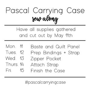 Since we will have people joining from all over the world, there aren’t any live portions of the sew along. You can sew at your own convenience–including working ahead or catching up later in the week if needed. And if you can’t sew with us the week of May 11th, no worries! Still sign up so you can save the emails and refer to them when you’re ready to make the Pascal Case.